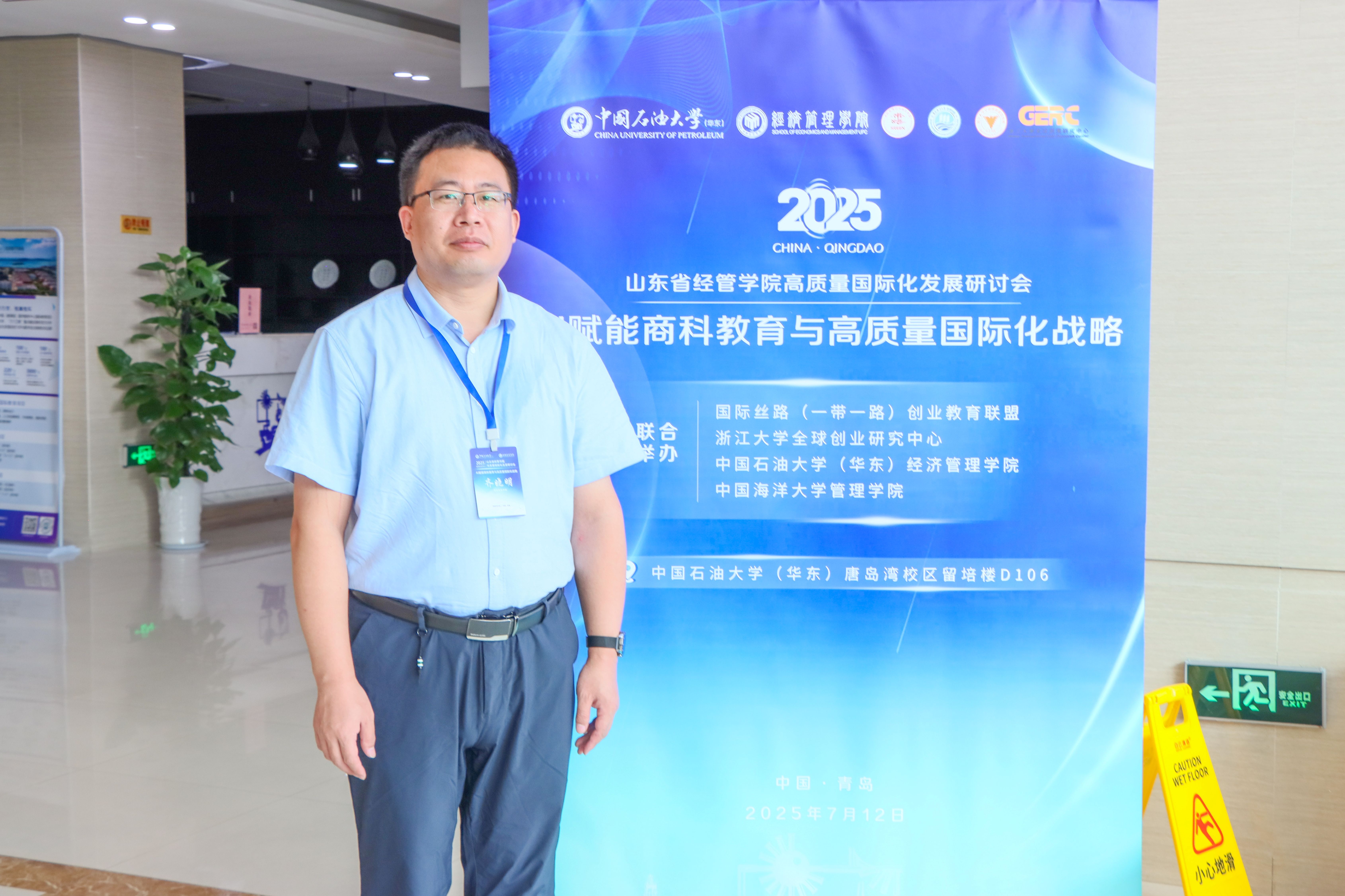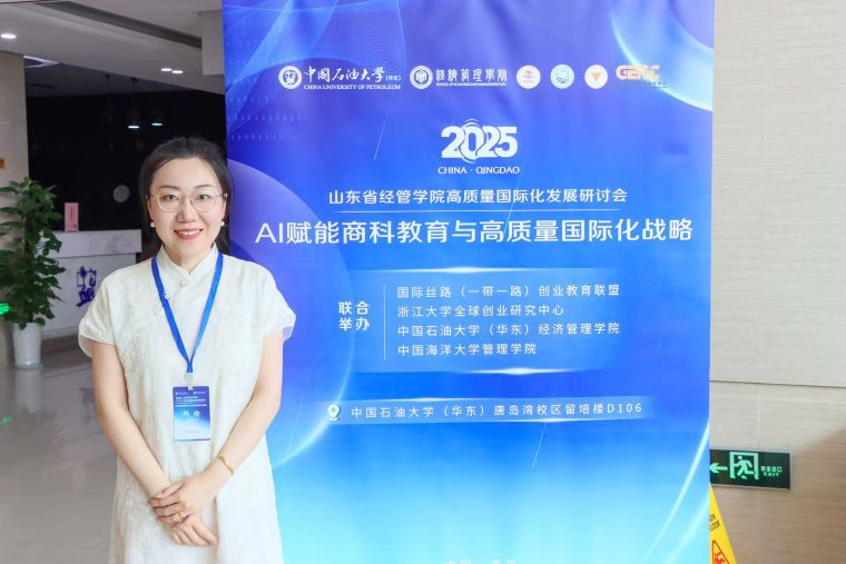 “AI赋能商科教育与高质量国际化战略研讨会”于2025年7月12日在青岛市黄岛区中国石油大学(华东)唐岛湾校区留培楼D106顺利举行。本次研讨会由国际丝路(一带一路)创业教育联盟、浙江大学全球创业研究中心联合中国石油大学(华东)经济管理学院和中国海洋大学管理学院共同举办,旨在推进新商科变革创新和跨越发展,实现AI赋能高质量国际化商科教育,加强经管院校间的合作交流与协同发展。国际商学院高度重视AI赋能商科教育及商科教育国际化发展,特委派副院长齐晓明、骨干教师韩瑜参会,积极汲取前沿理念与实践经验。