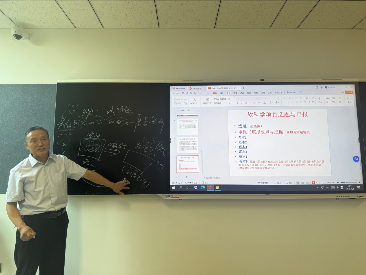 会上,沈传河教授围绕“软科学申报几点共识”“软科学项目特殊性”“选题与申报书的把握”三个方面展开深入讲解。他强调,软科学研究应紧密围绕国家和省经济社会发展战略,特别是要契合国家《“十四五”数字经济发展规划》和省委省政府关于推动经济高质量发展的总体部署。沈教授指出,研究选题需把握前沿性、战略性和实践价值,结合社会经济发展中的重大问题,突出服务地方、服务社会的导向。