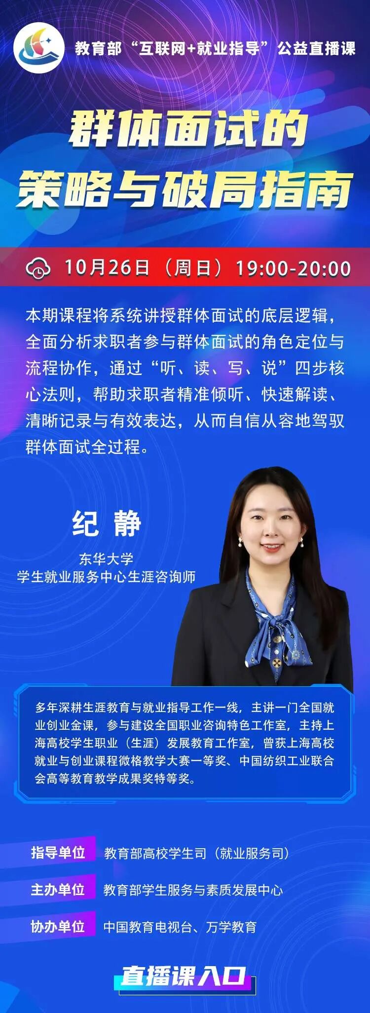 课程预告丨教育部“互联网+就业指导”公益直播课:群体面试的策略与破局指南