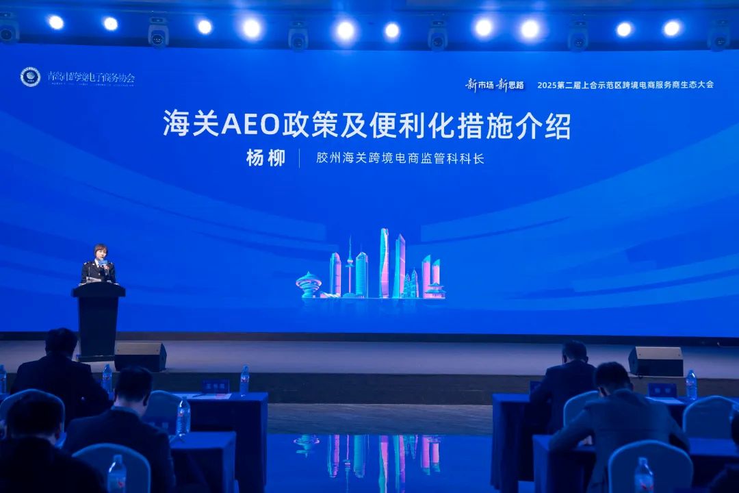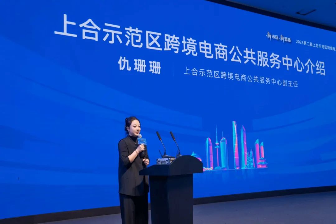 在“政策赋能”环节,胶州海关与市商务局的专家为企业带来了务实指引。胶州海关跨境电商监管科科长杨柳详细解读了AEO认证、便利化措施及支持“丝路电商”发展的海关政策,旨在为企业“减负提速”。胶州市商务局外贸科朱晓宇则系统介绍了跨境贸易、国际市场开拓、信用保险等多维度支持政策,释放出实实在在的政策红利。上合示范区跨境电商公共服务中心副主任仇珊珊展示了“物流+支付+知识产权+财税合规”的全链条公共服务框架,凸显了生态“硬支撑”与“一站式”服务能力,将“协同创新”理念转化为可感知的服务体系。