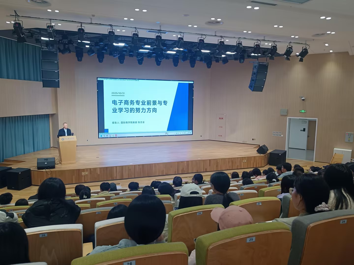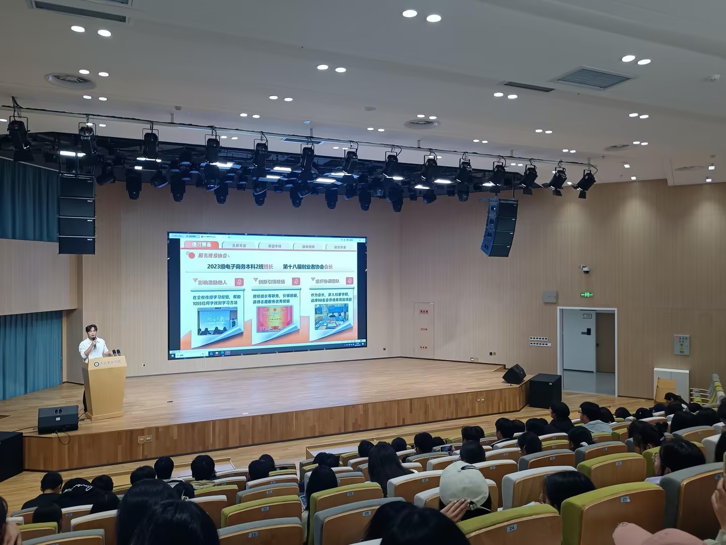 陈忠全教授以“电商专业前景与专业学习的努力方向”为主题,为新生们带来了一场富有启发的报告。陈教授结合行业数据与典型案例,深入剖析了电子商务专业的广阔前景,指出随着数字技术与实体经济的深度融合,电商领域对复合型人才的需求持续攀升,毕业生在跨境电商、电商平台运营、数字营销等方向均有丰富的就业选择。同时,陈教授也为新生指明了专业学习的努力方向,强调要扎实掌握新技术、新工具,提升数据分析、新媒体运营等实践技能,还要保持对行业趋势的敏感度,主动学习新技术、新玩法,鼓励大家以积极的态度迎接专业学习中的挑战,为未来职业发展积蓄力量。