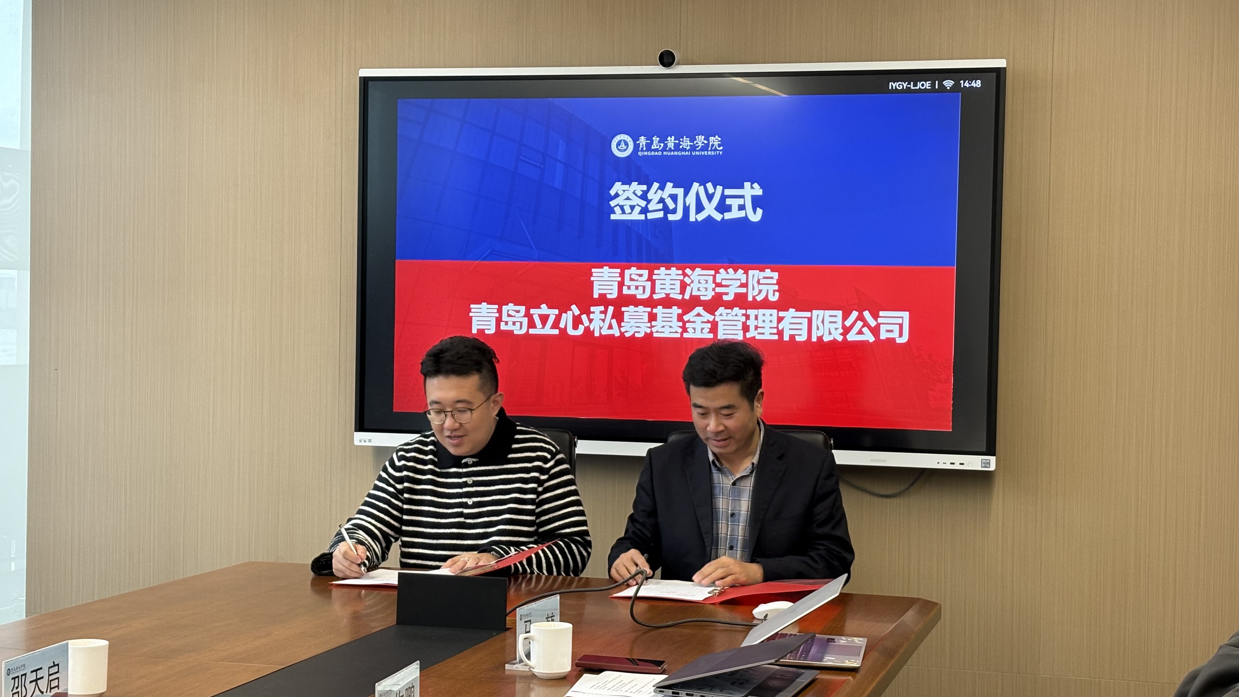 2025年11月3日下午2点,青岛立心私募基金管理有限公司总经理冯学健一行三人到访青岛黄海学院,在知信楼406会议室举行校企合作协议签署暨揭牌仪式。青岛黄海学院校长助理、人力资源部部长孙在福,国际商学院常务副院长孙兆忠,国际商学院财会金融系主任姜作鹏及办公室主任祝天惠,立心私募基金管理有限公司总经理冯学健、运营总监邵天启参加本次揭牌仪式,仪式由会计学专业主任马堃主持。