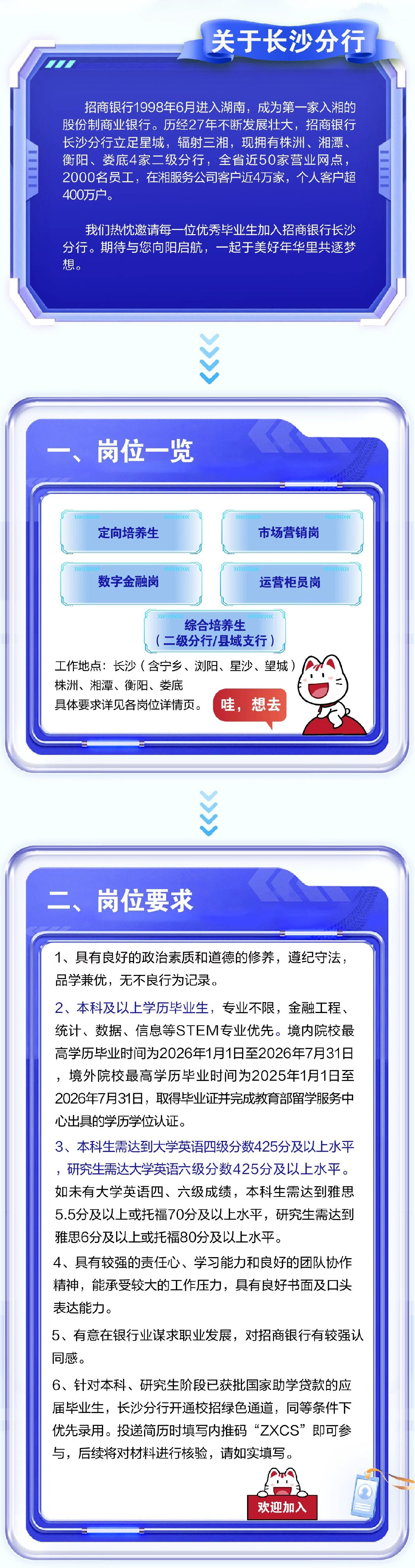 “梦想靠岸”招商银行长沙分行2026冬季校园招聘