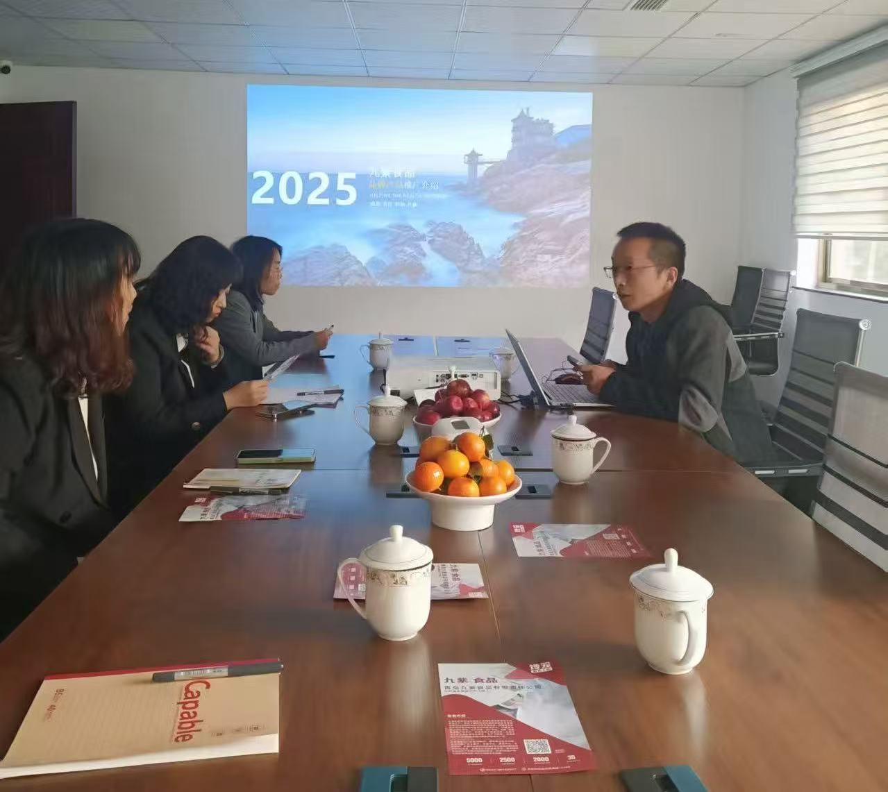 洽谈伊始,校企双方分别介绍了各自的发展概况与核心优势。国际商学院方面重点阐述了学院在数字商务领域的学科特色、人才培养模式及学生的创新实践能力。青岛九紫食品有限公司总经理周朋杨则结合企业宣传资料,详细介绍了公司以“感恩、责任、利他、共赢”为核心理念,致力于将优质胶东面食推向全国的企业愿景。他特别强调了九紫食品依托全产业链布局,从河套面粉优质原产地取材,到30万级净化车间标准化生产,再到覆盖多省的冷链配送网络,展现了企业扎实的产业基础和卓越的产品品质。目前公司旗下拥有经典面食、馅饼、包子、粗粮等四大系列百余款产品,其中非遗海虾大包、开花馒头等明星产品更是以其独特的工艺和鲜美的口感赢得了市场认可。