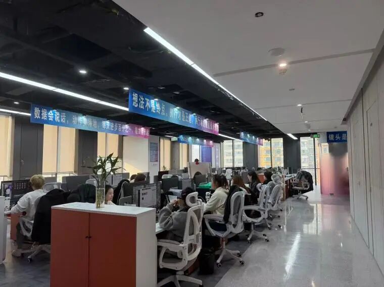 在负责人的引导下,师生们沉浸式参观了公司的文化演绎直播间、摄影棚、培训区及运营中心。亲眼见证了直播项目的完整流程,从基于地域文化的直播内容策划、主播的专业培训,到直播中的场控执行、流量调控,以及直播后的数据复盘与粉丝运营,对“内容引领”下的现代直播运营有了全新认知。