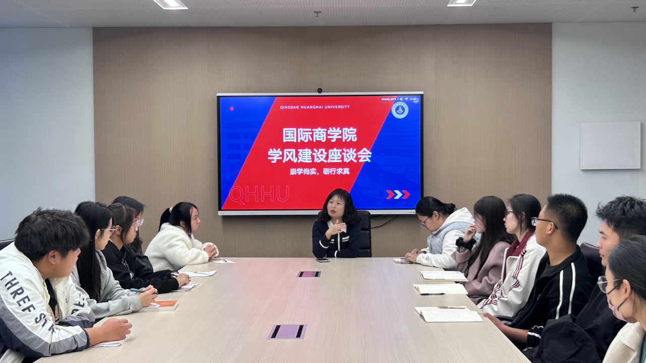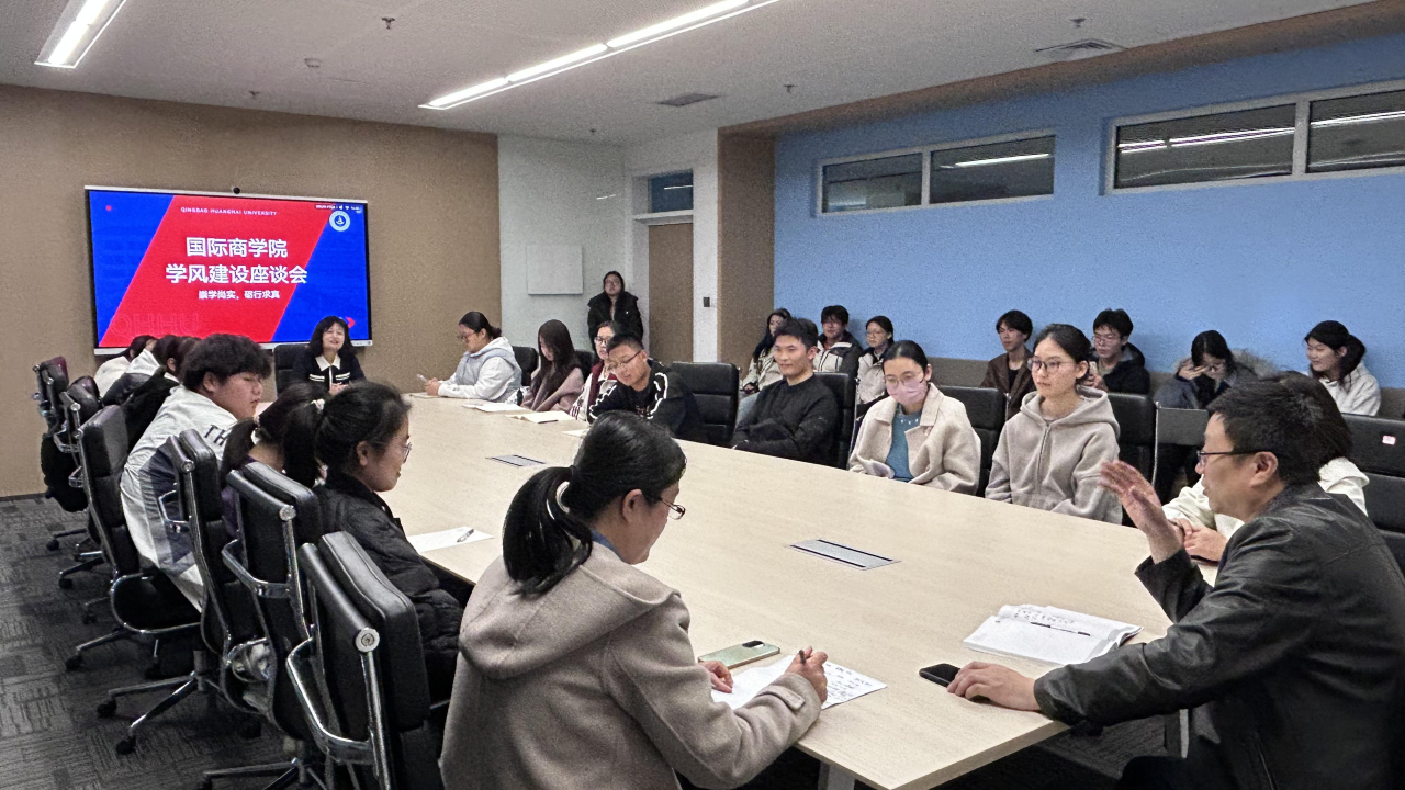 11月14日,国际商学院面向2025级教学信息员召开学风建设专题座谈会。会议由学院教学主任胡登龙老师主持,院长助理王佳璇、学工主任苑丽丽及教学督导负责人苏彩老师共同参会。本次会议以教学信息反馈与学风建设提质为核心议题,在严谨有序的氛围中广泛吸纳学生意见,凝聚师生共识,为学院学风建设精准施策奠定基础。