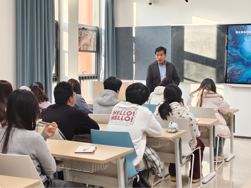 11月21日下午,山东财经大学资深教授、博士生导师张志元教授受邀莅临国际商学院,先后在406会议室、412教室开展专题指导会议与主题讲座。本次活动以“破界求存——当代大学生必修的财商美商课”为核心主题,国际商学院副院长齐晓明、院长助理王佳璇及财会金融系主任姜作鹏出席活动并对张志元教授的到来表示热烈欢迎与衷心感谢,学院相关系部负责人及金融科技专业学生代表参会,围绕学术前沿动态、学院发展规划及人才培养路径展开深入交流。