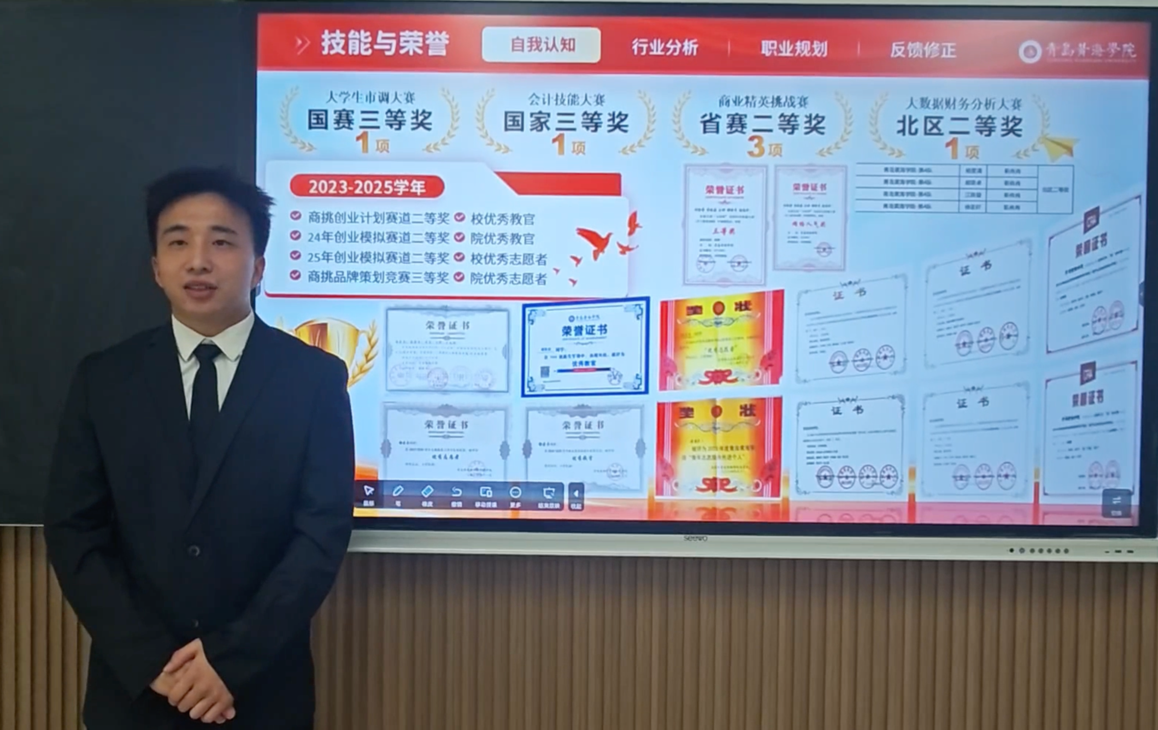 决赛现场紧张激烈,精彩纷呈。经过严格评审,最终,成长赛道的电子商务专业王鸣宇同学、财务管理专业郗荣卓同学、国际商务专业刘海燕同学,以及就业赛道的国际商务专业孟凯丽同学,凭借其极具前瞻性、可行性、创新性的职业生涯规划方案和出色的现场表现,征服了评委,成功胜出,获得了代表学院晋级校级复赛的宝贵资格。他们的胜出,既是个人努力的成果,也是所在专业培养模式的成效体现,更是学院整体育人环境的缩影。