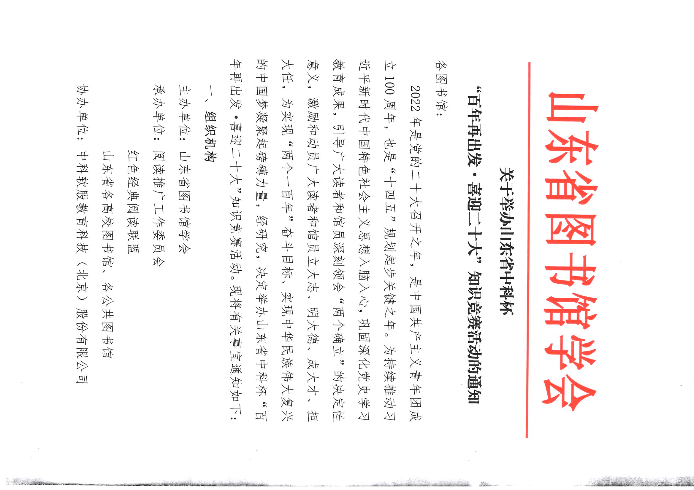 关于举办山东省中科杯“百年再出发·喜迎二十大”知识竞赛活动的通知