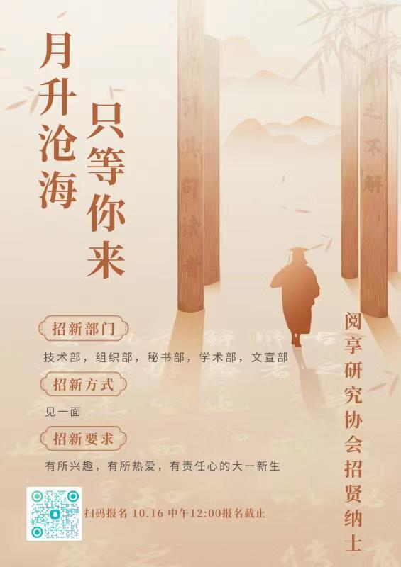 加入图书馆阅享研究协会,不仅能够得到一手的图书馆资源,第一时间知晓和参加各类赛事活动,还有独立的研讨室、丰富的团建活动和志愿者活动;在这里,你不用对未来的学习、生活感到迷茫,因为图书馆指导老师会为每位成员进行未来发展规划指导。比赛做策划、毕业论文准备时,还会给成员打造阅享成员论文专题指导沙龙等。图书馆老师和学长、学姐会带2023萌新们开启最有意义的大学生活。那就扫本掌门的专属二维码,成为本掌门的友人,一起领悟人生,升华自我,成为赢家?(?????????)?。