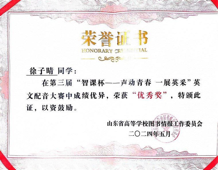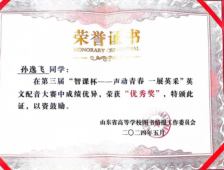 近日,第三届“智课杯——声动青春 一展英采”英文配音大赛圆满落幕。我校国际商学院徐子晴和智能制造学院孙逸飞两名同学凭借出色的英文配音水平,在比赛中脱颖而出,荣获“优秀奖”。