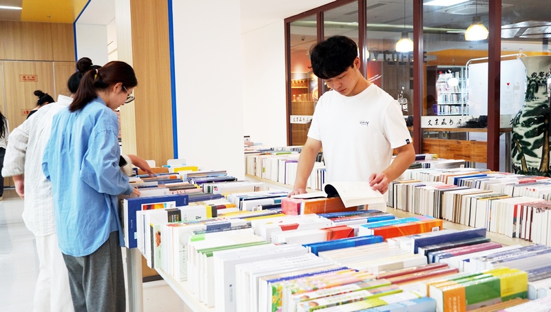 活动现场展览图书涵盖工业技术、经济、文化、教育、艺术、医学等各类图书6000多册,既有学科专业相关图书,又有社科畅销图书。活动集选、荐、借为一体,师生能够参与和体验到图书馆图书入藏的全过程。活动中,师生们认真翻阅挑选喜爱的书籍,有序在图书预约登记处静候现场工作人员进行借阅前准备,现场即可以借阅亲自挑选的图书。
