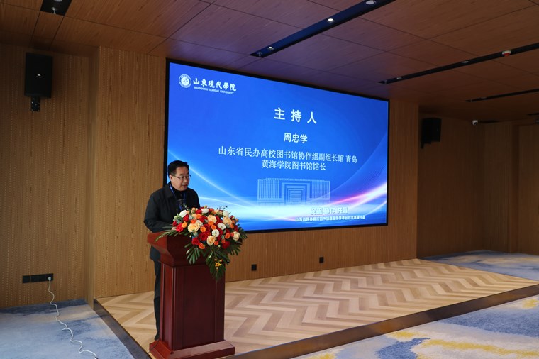 会议共分为五个环节。第一环节为学术研讨会,由山东省民办高校图书馆协作组组长、山东现代学院图书馆馆长徐兴余主持。会上,山东省高校图工委副主任兼秘书长、山东大学图书馆馆长赵兴胜以及山东省民办教育协会常务副会长、山东现代学院党委副书记、副校长帅相志等领导和专家发表了重要讲话,分享了对民办高校图书馆发展的见解。第二个环节是专家讲坛,主旨报告由周忠学馆长主持,特邀重庆市民办高校图书馆协作组组长、重庆人文科技学院图书馆馆长杨晓琼进行专题报告,题为《携手奋进,和合共赢川渝民办高校图书馆协作组工作漫谈》,深入探讨了川渝地区民办高校图书馆的合作与发展。在第三个环节的图书馆论坛中,林珏含馆长助理就“高校图书馆智慧化建设中管理与服务创新实践”进行了主题报告,介绍了我馆的发展情况,获得了与会同行的高度认可。