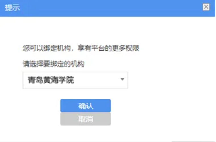 第七步:选择所在机构,平台会对IP自动进行识别,IP在机构范围内即账号绑定机构成功。绑定后有效期180天,有效期间在机构IP内登录,有效期自动延长。