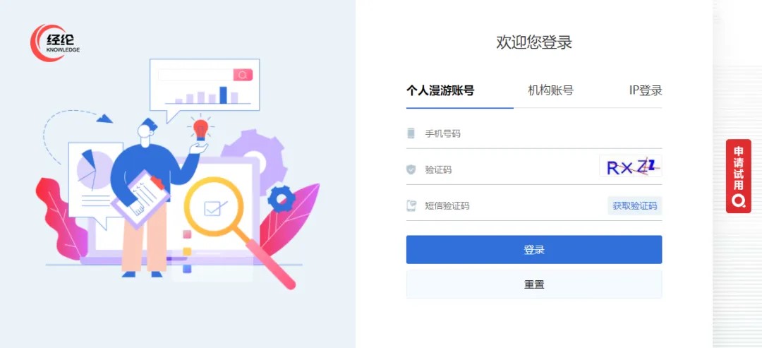 校园网IP范围外:需要在校园网内(IP)范围内用手机号注册个人漫游账号。在校园网外可用个人账号登录系统,无缝使用海量知识资源。
