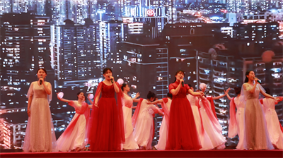 开场舞过后,就是歌伴舞《灯火里的中国》,嘹亮的歌声,优美的舞姿诠释了当今中国的魅力。这个舞蹈是在演出前3天开始排练,从接到这个紧急任务开始,老师便带领着学生们紧锣密鼓的排练起来,利用每一天中的半天时间,赶出了这样一场歌伴舞,这么短的时间突击出来的舞蹈不能说非常的整齐,但是能有如此的成果也是非常不易了。