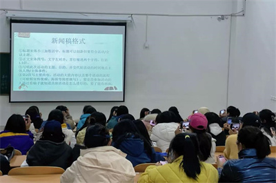 接着,邹香贴合学前教育学院工作要求分别从稿子的分类、新闻稿的相关要素、新闻稿的格式、注意事项等四个方面为同学们展开培训。