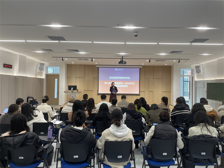 2023年11月15日下午,青岛黄海学院教育学院特聘教授冯欣在知信楼135展开“舞台表演与课堂教学—仪态的艺术”专题讲座,活动由音乐教育教研室主任张若愚主持。