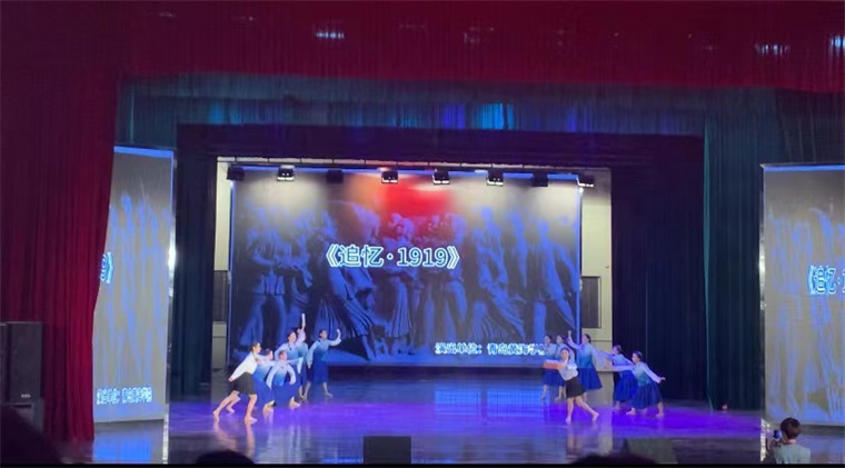 舞蹈剧目《追忆·1919》由学生构思编排,教师修改指导,以中国拒签巴黎和会为背景,孩子们因机缘巧合打翻了爷爷的手提箱,回想到了1919年在巴黎和会上不平等条约,强烈要求在巴黎和会上拒绝签字。五四热潮在全国掀起,热血精神感染了全国人民,他们不惜献出自己年轻的生命捍卫了民族尊严,凝聚了民族力量。