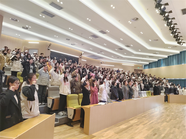 大会最后,在各班团支书同学的带领下,全体同学起立进行幼儿园教师的宣誓。通过诵读庄重的誓言,同学们感受到幼儿园教师的职责与使命、幼儿园教师应具备的师德,不断深化对教育见习工作的认识及重视。