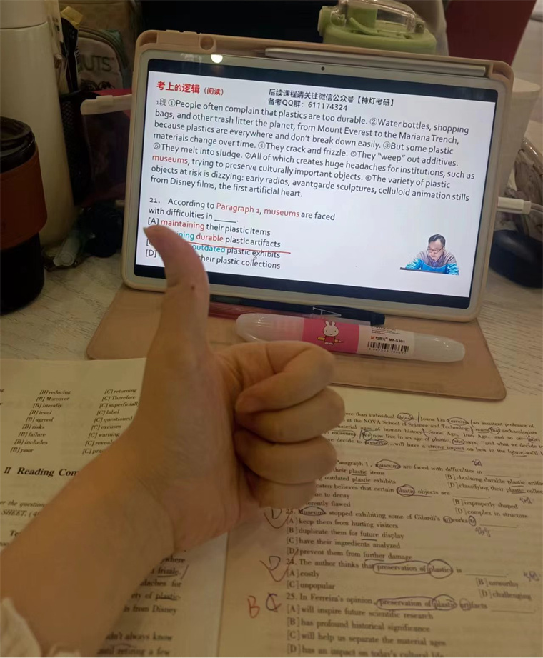 各位学弟学妹们大家好呀!大四是匆忙的一年,也是充满不确定性的一年,你们会面临着各种各样的压力。有时学着学着忽然停下笔,思考能不能考得上?但是我想告诉大家,不管在未来你碰到多大的困难,你都应该坚持下去。我认为一个人的内核一定要足够的强大,不论是在备考期间,还是在未来的复试或者调剂的过程当中,都需要稳下心来,一步一个脚印地完成每一步计划。
