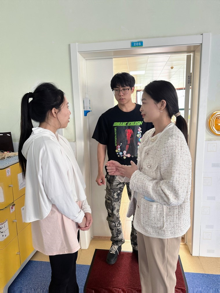 最后,尚博文老师与幼儿园的领导和教师就学生教育实践情况进行深刻交谈,详细了解了在园实训学生的真实情况,学生们被分配到幼儿园的各个班级,与经验丰富的教师一起参与日常教学活动。幼儿园薛老师对我校专升本学生的专业综合实训整体表现给予了高度认可,“每一位学生都很认真,能积极参与课程设计、组织课堂互动、与幼儿沟通交流等各个环节,还会基于所学的专业知识结合教育实践提出问题与园内老师们展开讨论,理论知识很扎实。并且,无论是对班内活动还是幼儿园本次儿童节的各项大型活动,都能主动到各项准备工作中去。”