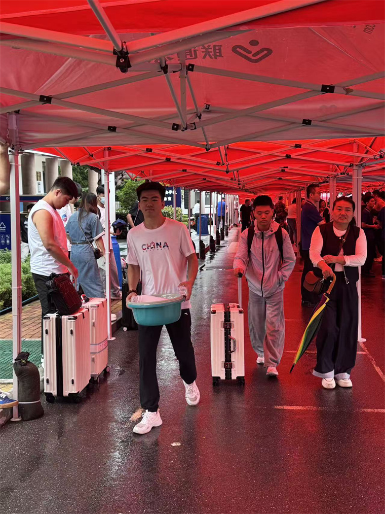 在校园门口,志愿者们热情地接过新生的行李,一路指引他们前往报到点。即使汗水浸湿了衣衫,他们也毫无怨言,一趟又一趟地穿梭在校园里,用行动传递着学院的温暖。