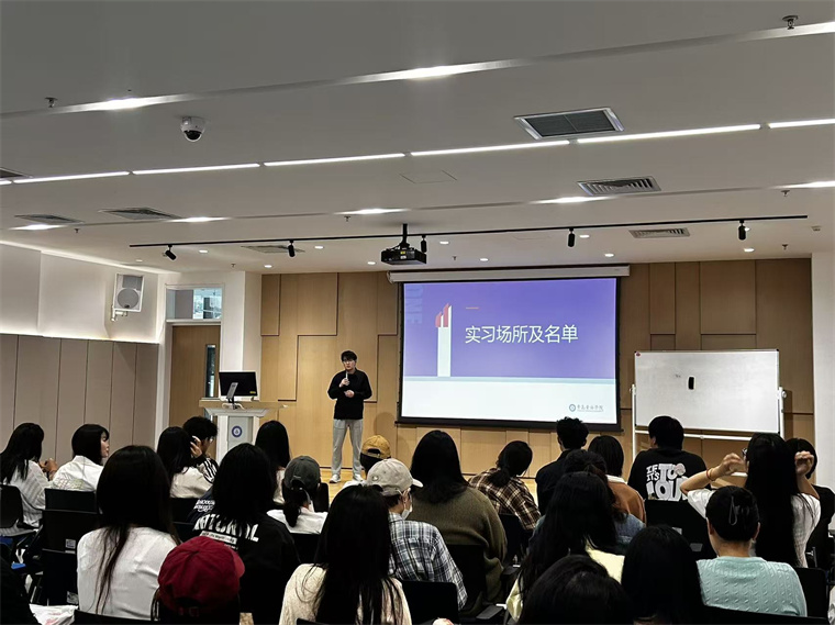 会上,左浩博主任详细介绍本次的实习具体工作,主要包括本次实习的具体安排、各项规章制度与纪律要求,并重点阐述了实习期间需完成的核心任务,为同学们提供明确实习方向。除此之外,本次动员大会也明确指导教师的责任和义务,提醒指导教师要及时了解学生的问题及情况,做好学生的安全教育和心理疏导工作。