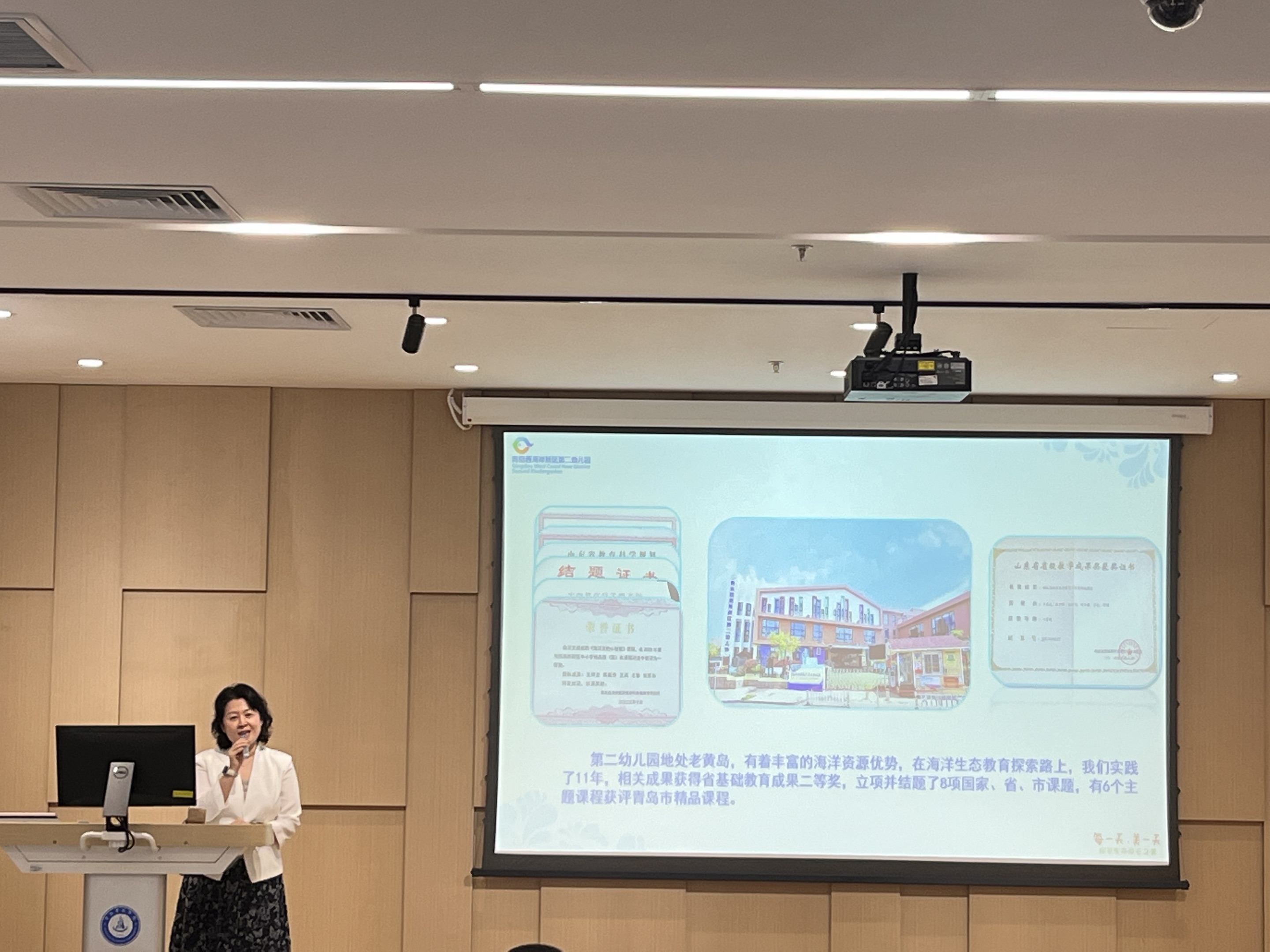 仪式后,刘训华教授以“中国海洋教育自主知识体系的实践与探索”为题开讲,从国家战略视角剖析海洋教育的重要性,强调要通过跨学科融合打破学科壁垒,培养兼具海洋思维与创新能力的人才。王文成园长则结合幼儿园实践,分享“海洋生态文化下的课程构建与实施”的经验。
