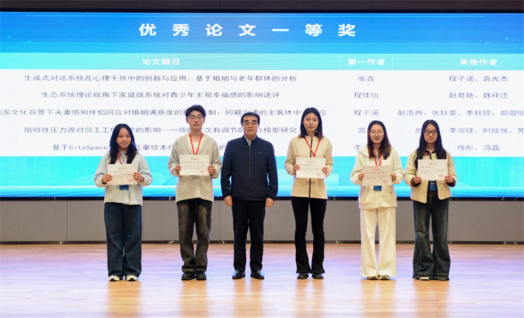 11月9日上午举行闭幕式。大会表彰了优秀学术成果,14位青年学者凭借其创新性研究荣获优秀论文奖,展现了心理学领域新生代的科研活力与潜力。颁奖典礼上,获奖代表依次上台领奖。