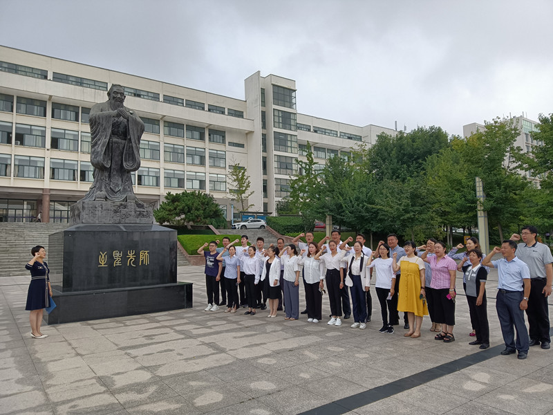 在第37个教师节来临之际,为进一步加强师德师风建设,增强教师的荣誉感、责任感和使命感,9月10日上午,学生工作部全体教师齐聚孔子铜像前小广场,隆重举行了教师宣誓活动。