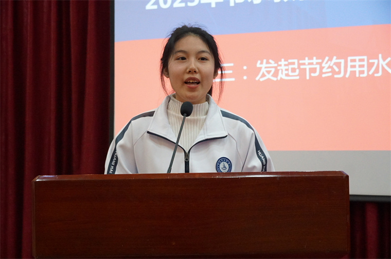 启动仪式第三项,朱晓彤同学向全校师生发出节水倡议: