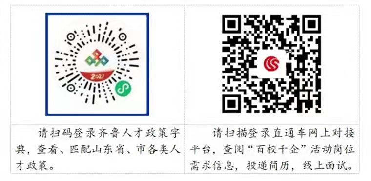 “山东—名校人才直通车”网上对接平台(https://www.sdrc.com.cn/accountSdrcw/index)已开通全链条求职功能。自信息发布之日起,即可在线查阅用人单位岗位需求,实时查看意向单位联系方式,并可在线投递简历和参加面试,与用人单位进行自主对接沟通,确定来鲁就业意向。