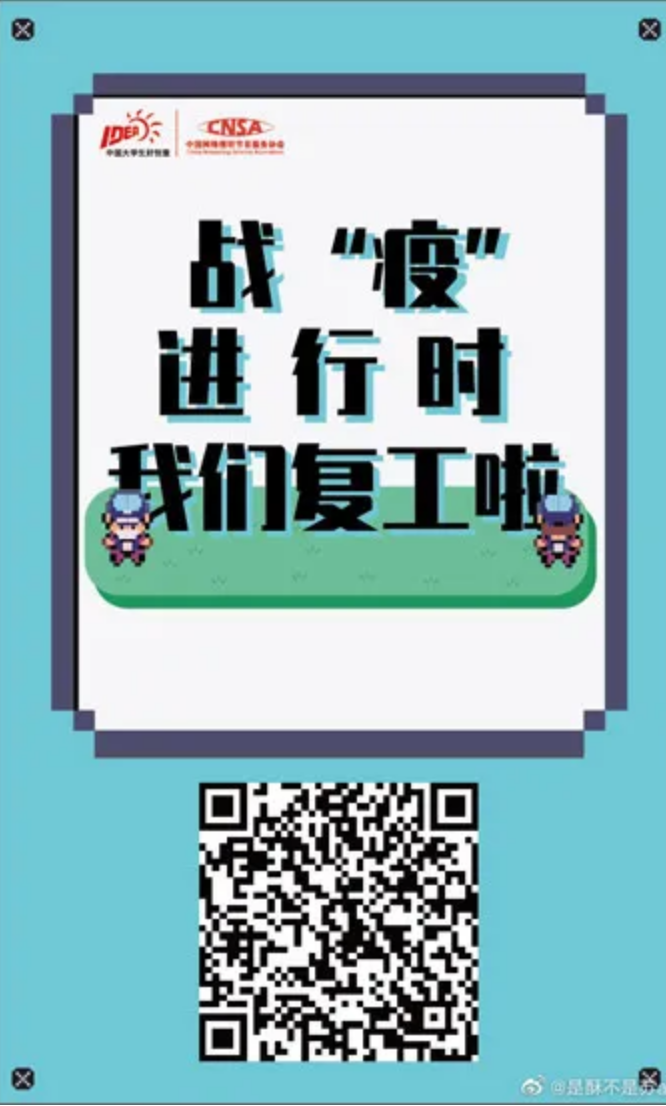 苏宜恒、李皓宇创作的《战“疫”进行时》用h5小游戏宣传复工复产的注意事项,用设计服务防疫,获得国家三等奖;