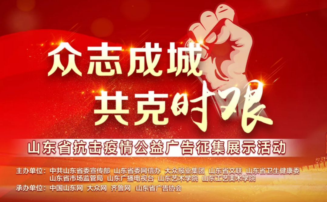 由中共山东省委宣传部、山东省网信办、大众报业集团、山东省文联、山东省卫生健康委、山东省市场监管局、山东广播电视台、山东艺术学院、山东工艺美术学院联合主办的“众志成城、共克时艰 山东省抗击疫情公益广告征集展示活动”于近期落下帷幕。在中共青岛黄海学院艺术学院党支部的指导下,艺术学院学生参与此项征集活动。