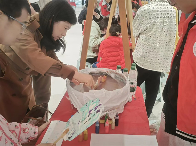 活动筹备期间,志愿者们迅速而高效地分配任务,接受了全面且专业的培训指导,随即投入到紧锣密鼓的现场布置中:精心搭建舞台,有序搬运物资,巧妙布置摊位。红白相间的遮阳棚与中国红的布幔在轻风中摇曳生姿,为活动现场增添了几分喜庆与热烈。非遗展示区作为活动的璀璨亮点,得益于志愿者们的精心筹备,非遗作品被错落有致地展示,每件作品背后的故事与精湛技艺都被志愿者们熟稔于心,以便向每一位来访者细致讲述,传递非遗文化的深厚底蕴。