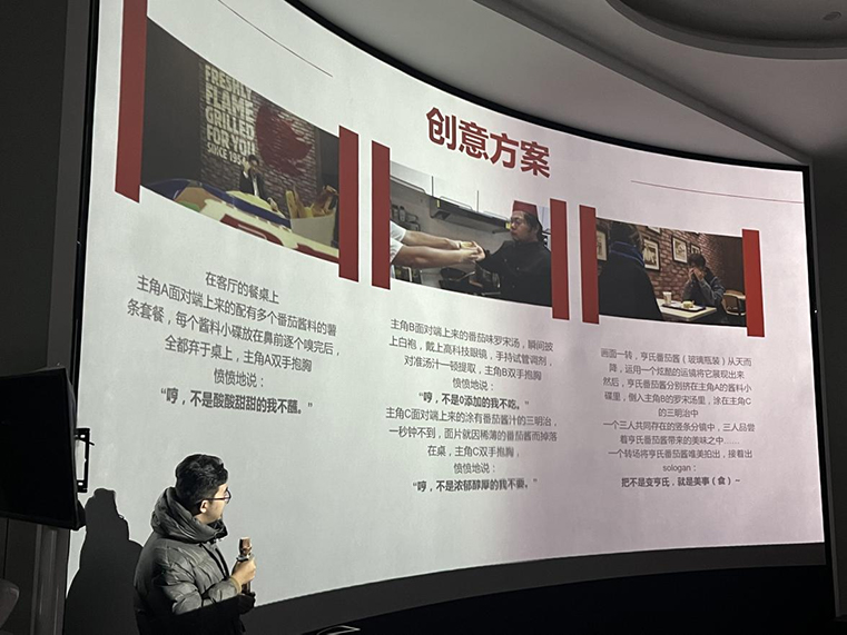 卡夫亨氏市场总监Eric Yu凭借专业的广告学视角,对同学们的作品进行了生动且富有感染力的点评。他针对作品的创意构思、视觉呈现、传播效果等方面,提出了一系列具有针对性的建议。
