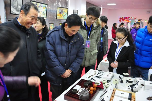 12月24日,我校人文教育与艺术学院2014届学生毕业设计作品展在校体育馆拉开帷幕。本次设计展受到我校领导的高度关注,青岛黄海学院董事长刘常青,院长焦奎,党委书记冯宜明,党建工作联络员、督导专员陈稷玲,常务副院长贺永宜等校领导出席了展会。人文教育与艺术学院院长邱振亮教授陪同校领导参观并详细介绍师生作品。