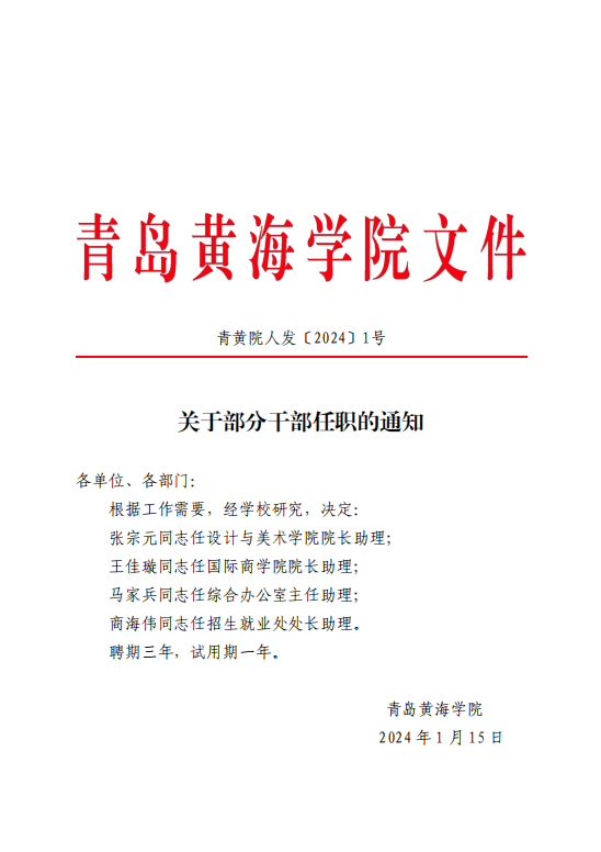 关于张宗元同志任职的通知