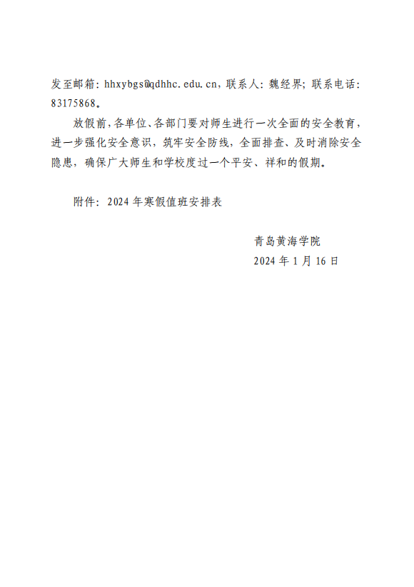 关于做好 2024 年寒假放假安排的通知