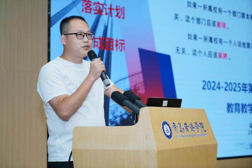 副院长李岳在学院全体教职工大会上,首先向各位教师明确新学年领导班子的职责分工,确保学院工作高效有序进行;之后,传达学习《中共青岛黄海学院委员会关于建立健全师德师风建设长效机制的实施办法》文件精神,并带领全体教师重温了《新时代高校教师职业行为十项准则》,着重强调了师德师风的重要性,呼吁教师们坚守教育初心,树立良好师德风范。此外,她还深入解读了学院年终考评办法,鼓励大家积极提升个人教学能力与科研水平,以实际行动响应学校及国家的教育政策。