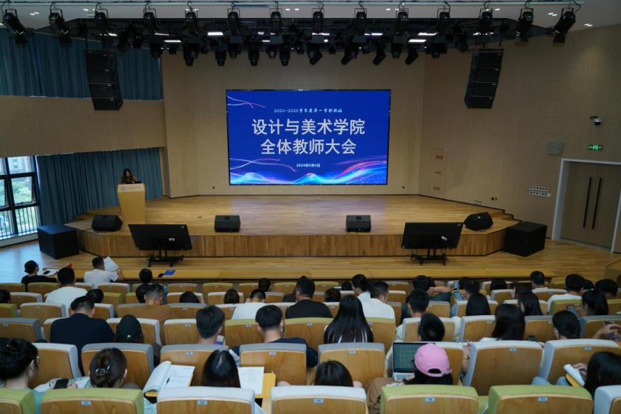 2024年9月4日下午,设计与美术学院在知信楼306会议室召开了全体教师大会,部署2024-2025学年第一学期重点工作内容。会议由学院副院长李岳主持,学院领导班子成员、全体教职工出席会议。