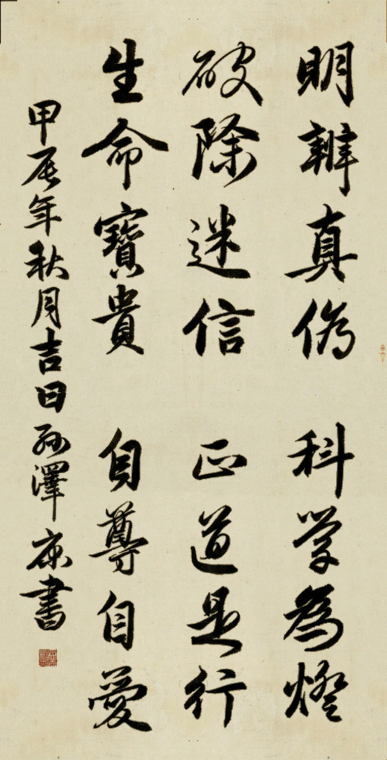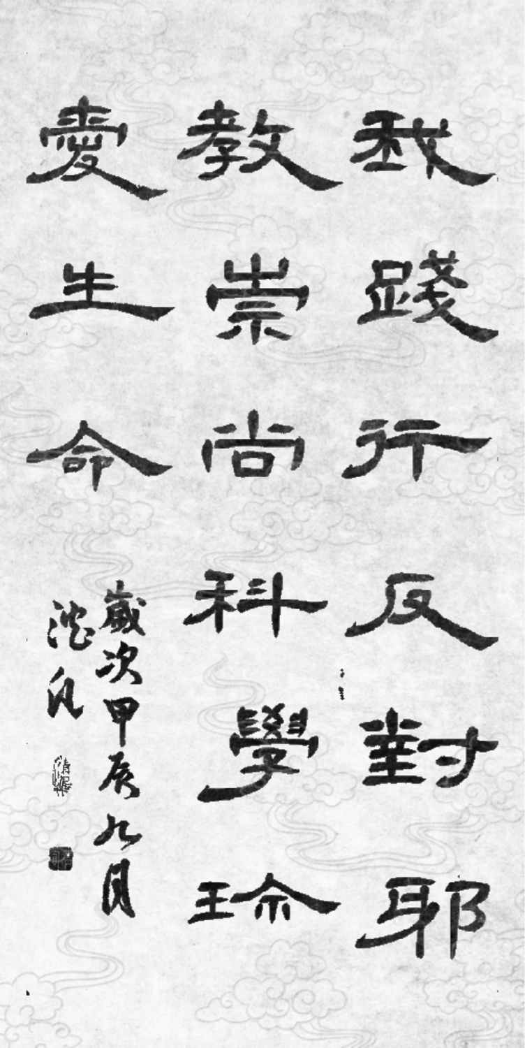 内容:明辨真伪,科学为灯。破除迷信,正道是行。生命宝贵,自尊自爱。