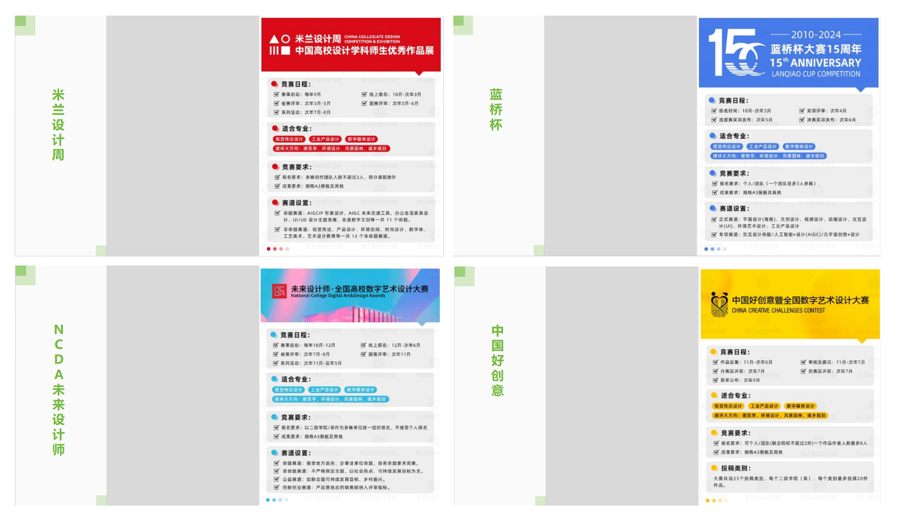 本次竞赛专题宣讲除环境设计专业适参赛事外,也对其他类别赛事进行了关联性宣讲。为同学们提供了更广泛的选择和展示平台。“以教促赛”,将专业课程教学与专业赛事相关联,这既是对学习成果的检验,也是展现自身专业综合能力的绝佳时机。