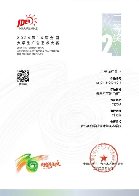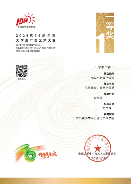近期,第16届全国大学生广告艺术大赛(简称“大广赛”)学科竞赛成果展示盛典在北京东亿国际传媒产业园演艺大楼隆重举行。青岛黄海学院设计与美术学院在此次大赛中表现卓越,视觉传达系学生李剑坤同学作品荣获全国一等奖,指导教师崔京涛;刘文硕同学作品荣获全国二等奖,指导教师刘玥言;本次学科竞赛获奖再次彰显了学院师生在广告艺术与设计教育领域的强大实力。