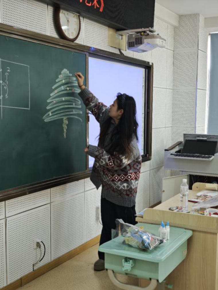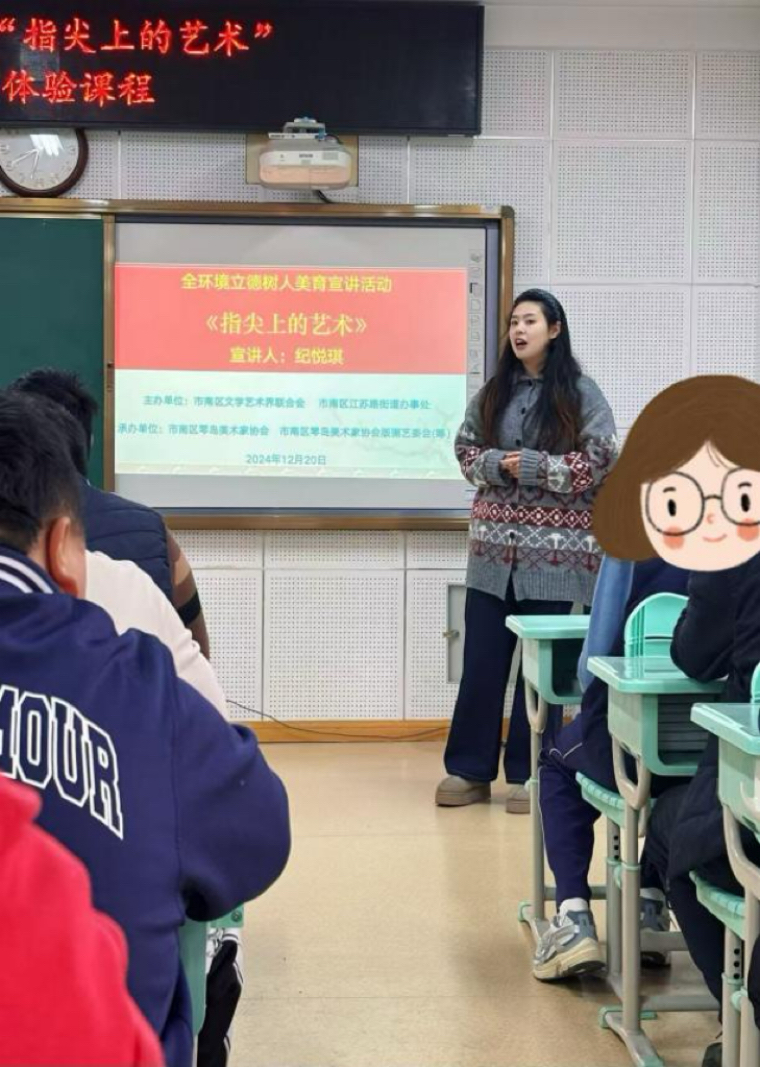 纪悦琪老师作为此次活动的宣讲人,如同一束温暖的阳光,照亮了孩子们心中的艺术之路,让他们在色彩斑斓的世界里,找到了属于自己的舞台。同时,又如一缕清风,拂过孩子们的心田,让美育的种子在每个同学们的心中生根发芽。