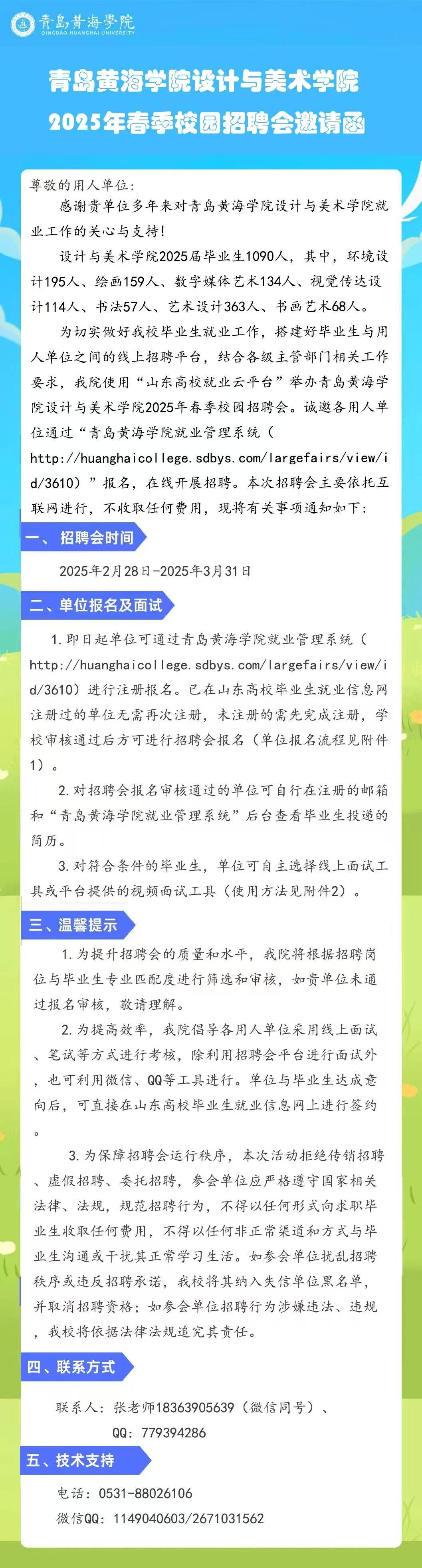 青岛黄海学院设计与美术学院2025年春季校园招聘会邀请函