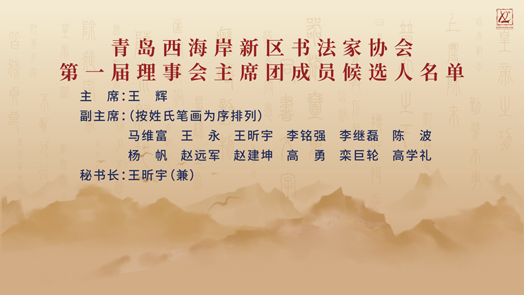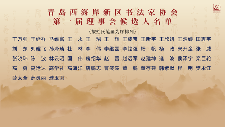 参加会议的代表62人,期间按照程序选举产生新区书协第一届主席团成员:主席1人,副主席12人,秘书长1人,副秘书长3人。