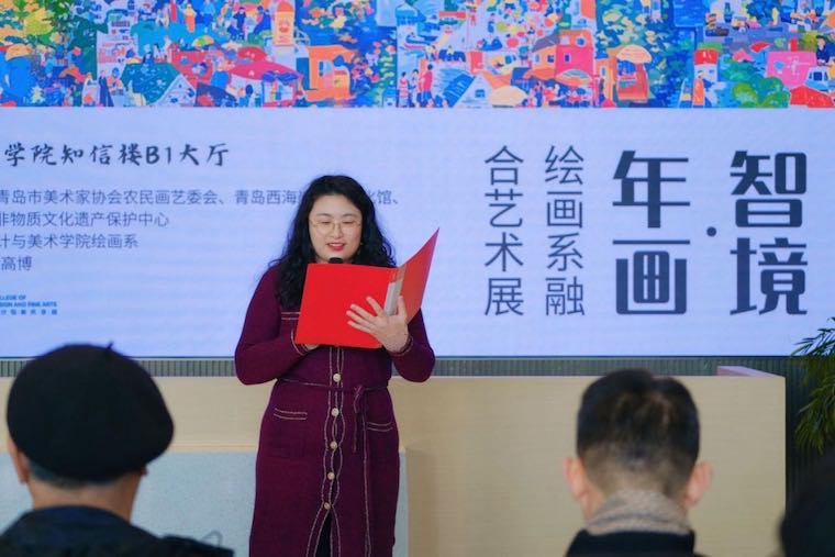 2025年3月20日上午10:00,青岛黄海学院设计与美术学院绘画系“智境·年画”——融合艺术展在知信楼B1大厅正式拉开帷幕。本次展览由青岛黄海学院设计与美术学院绘画系承办,作品涵盖各知名年画专家、绘画系师生等。开幕式由青岛黄海学院设计与美术学院绘画系主任邹萍主持。