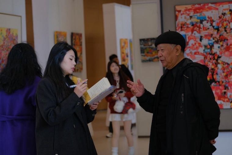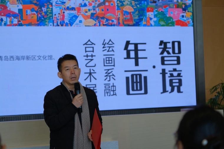 院长助理张宗元介绍了学校的具体情况,“胶南年画是中国传统文化的重要组成部分,但在当代社会中,它的传播与影响力逐渐减弱。我们希望通过这次展览与座谈会,探索胶南年画在当代艺术中的新可能,激发更多年轻人对传统文化的兴趣。”